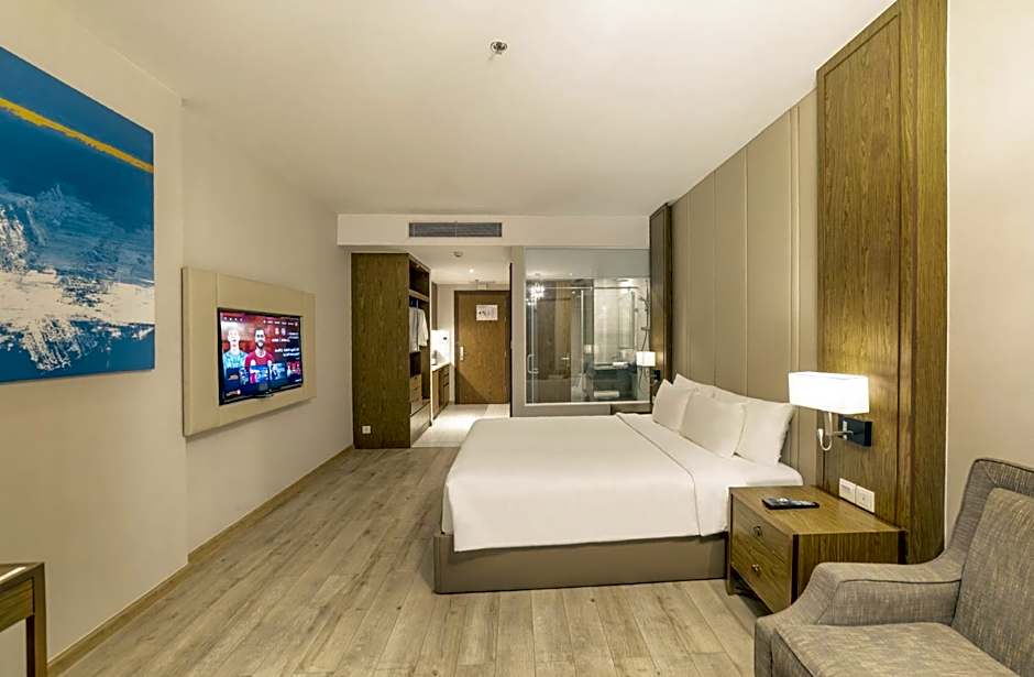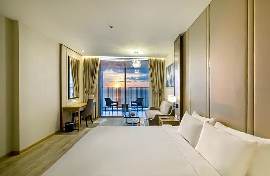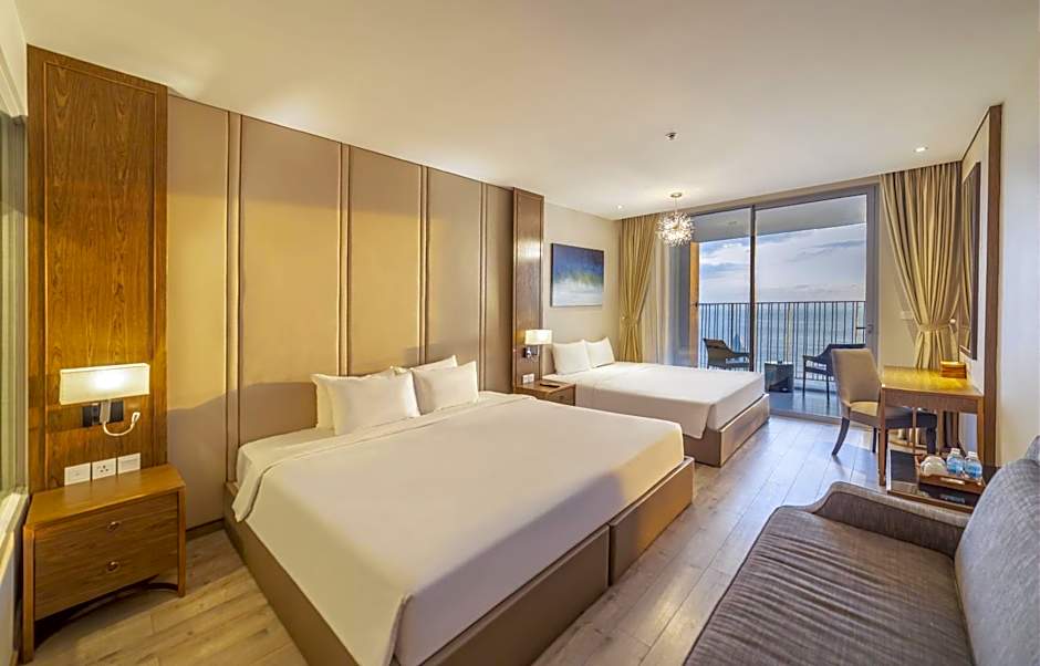 A variety of room configurations awaits, from Studio with Ocean View and Studio with City View to Family Studio with Sea View, plus suites such as Premier Studio Deluxe Suite with Bathtub or Suite with City View. Some layouts sleep up to 3 adults and 2 children, while larger options like a Family Room with Sea View accommodate more guests. Located about 0,4mi from the city center and offering direct beach access, this coastal stay blends sun, sea, and stylish comfort for a memorable Nha Trang break.